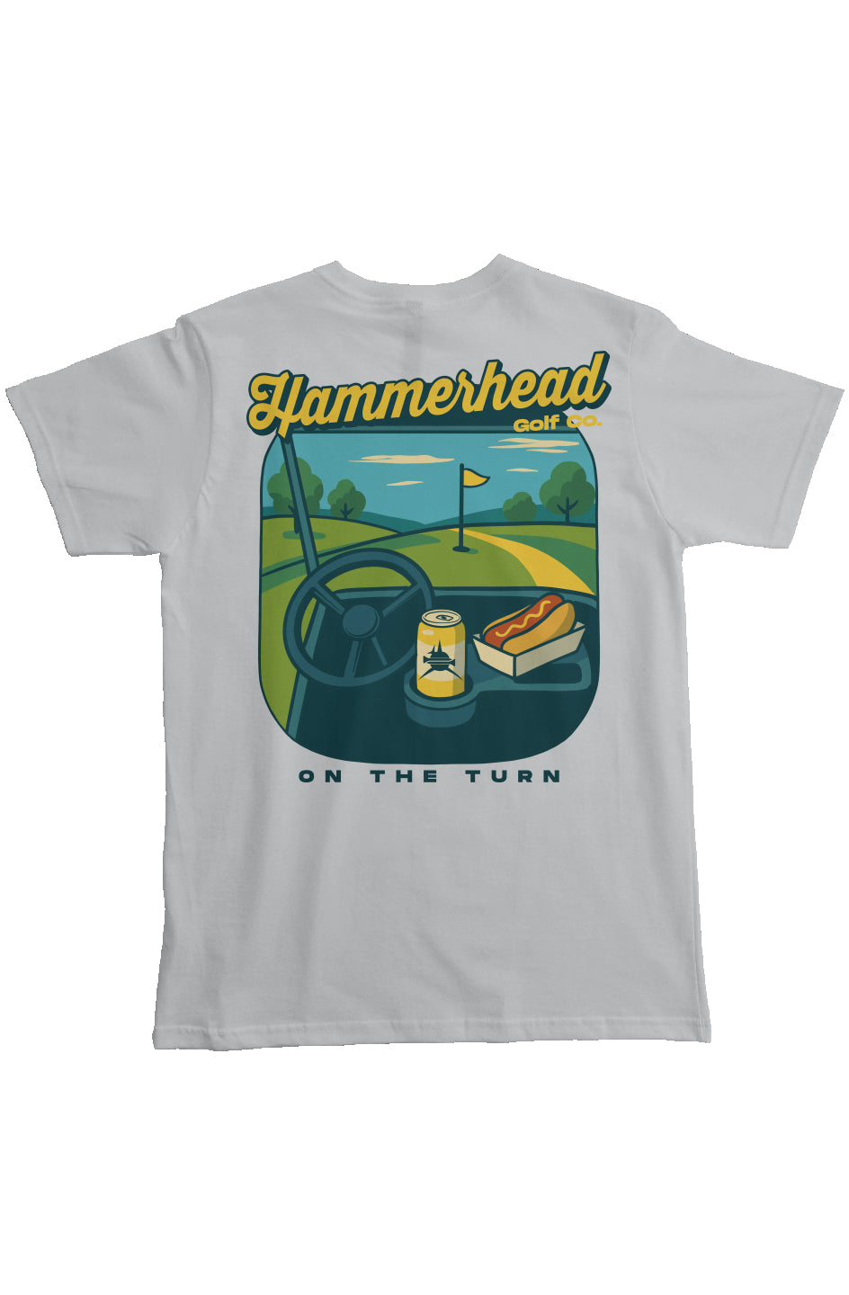 Introducing the On the Turn Tee, from Hammerhead Golf Co. Made from premium, heavyweight organic cotton, this T-Shirt is ideal for your daily adventures. Whether you are hitting the driving range, hanging with friends, or enjoying a night out, do it in style with your favorite tee from Hammerhead Golf Co.